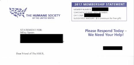 | I don't just have cards. Here's an envelope for my membership renewal statement from the Humane Society. |